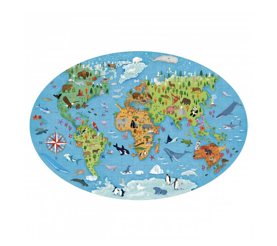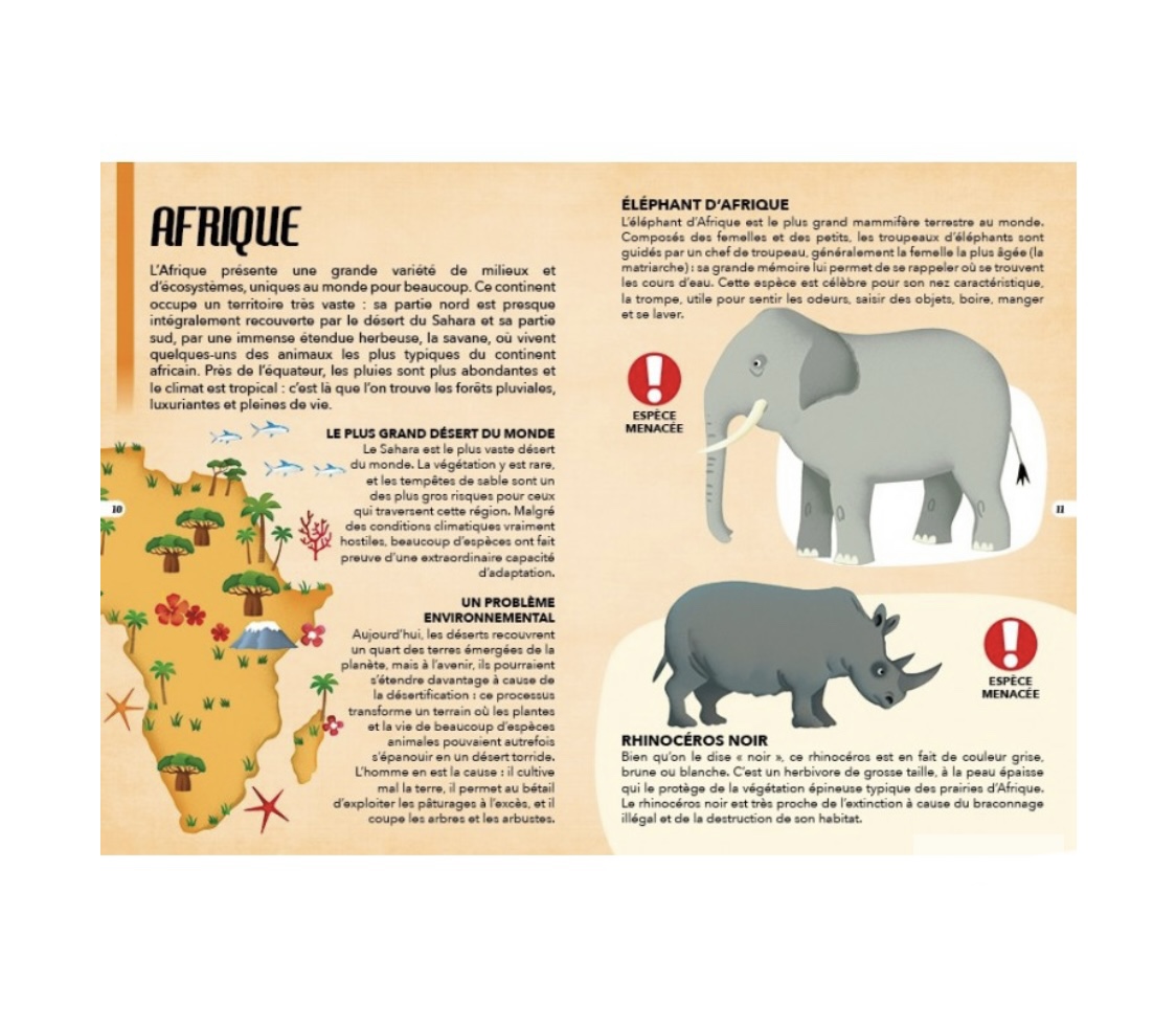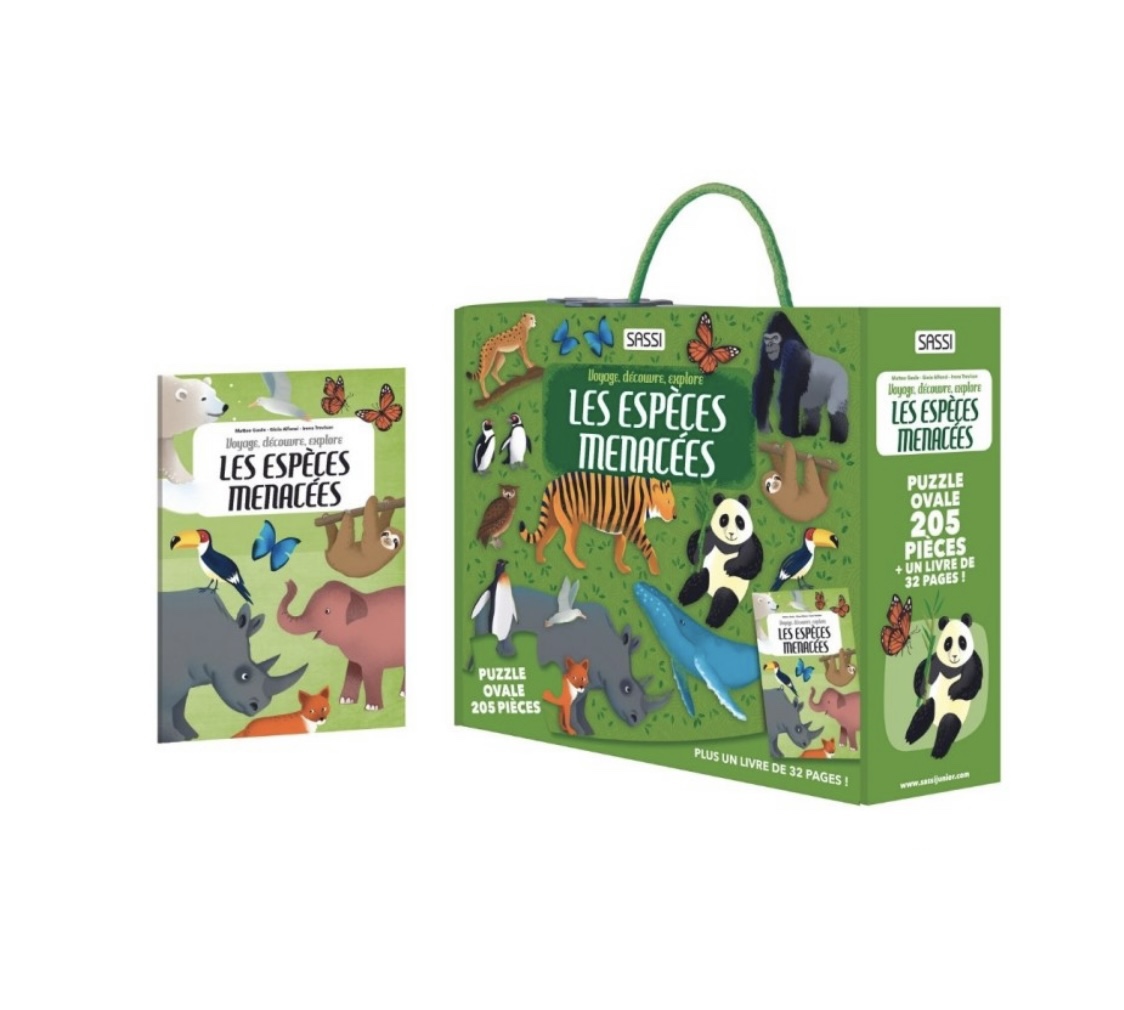Assemble ce puzzle pour connaître les animaux qui peuplent les différents continents, puis lis ce livre pour en savoir plus sur les espèces menacées d’extinction.