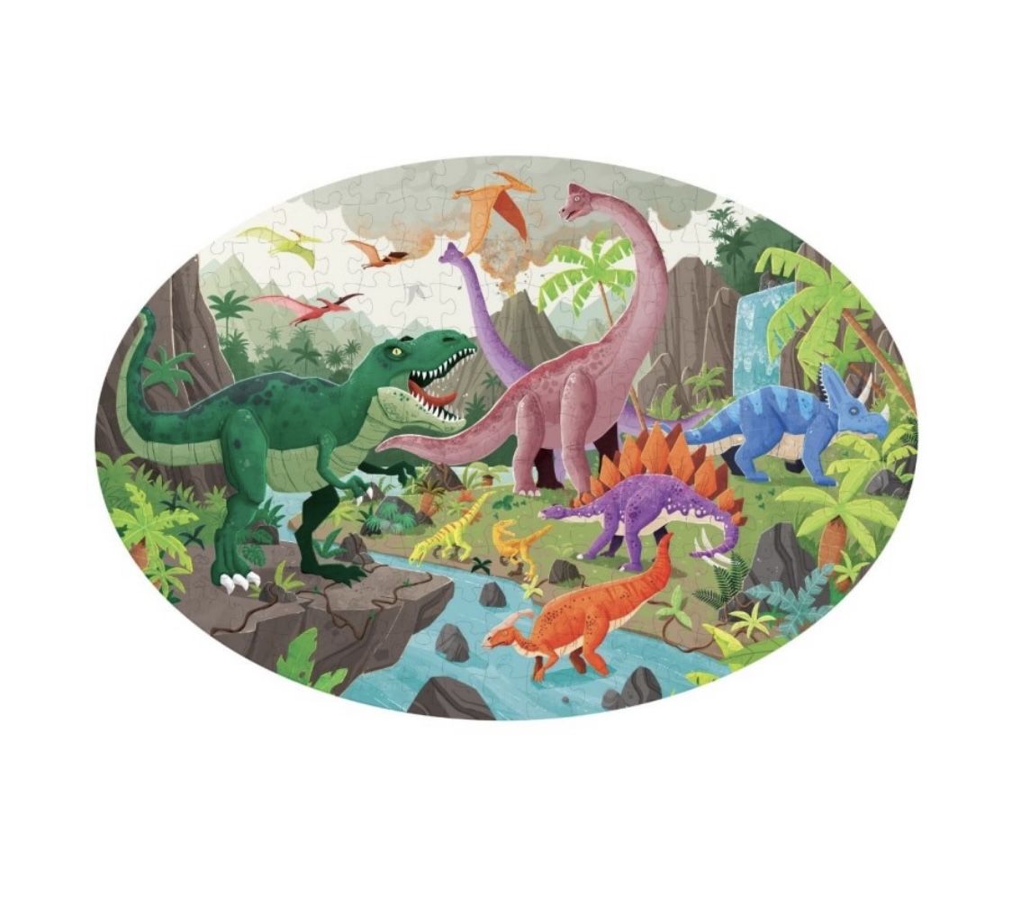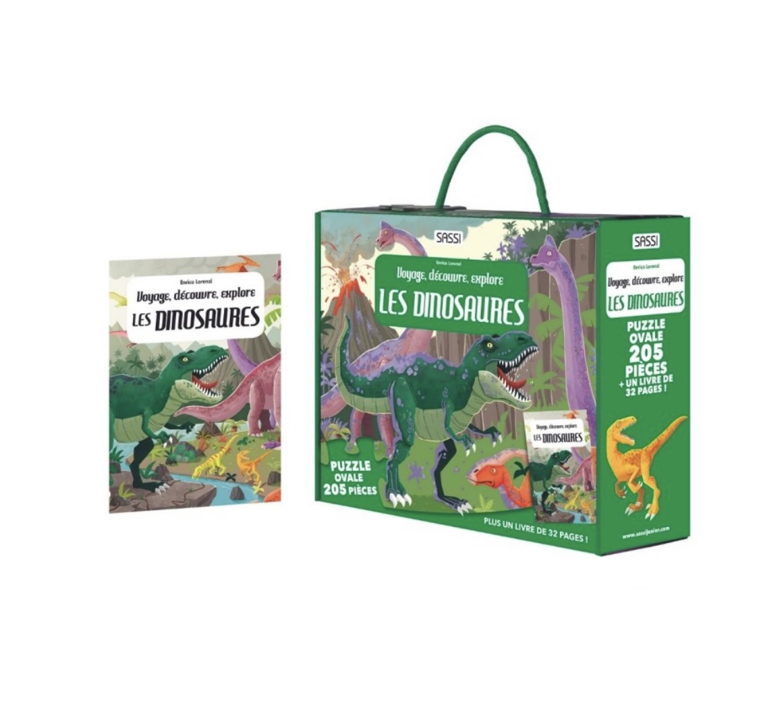 Un puzzle ovale avec 205 pièces, plus un libre de 32 pages ! Découvre les reptiles géants qui dominaient la Terre, il y a plusieurs millions d’années. Tu vas observer un fossile, étudier les différentes espèces de dinosaures et découvrir les noms des plus connus du jurassique. Laisse toi surprendre par cet incroyable voyage dans le temps !
