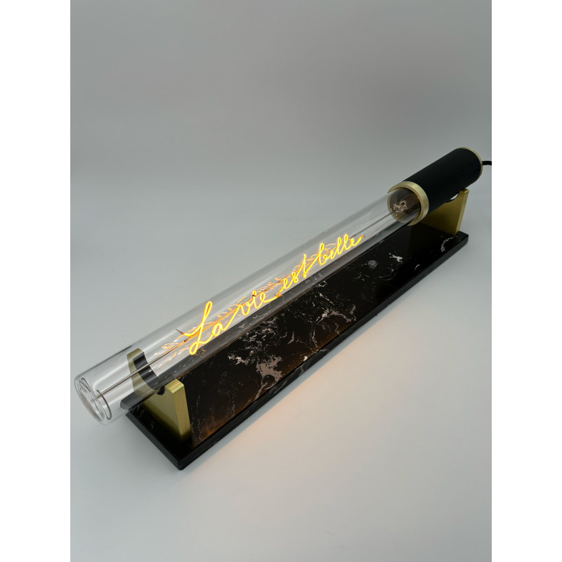 Exprimez vos sentiments avec l’ampoule Message In The Tube « La vie est belle ». Cette ampoule unique, conçue dans un design tubulaire, diffuse une lumière douce et chaleureuse, idéale pour créer une ambiance romantique et intime. Parfaitement dimmable, vous pouvez ajuster l’intensité lumineuse pour que votre message brille exactement comme vous le souhaitez.