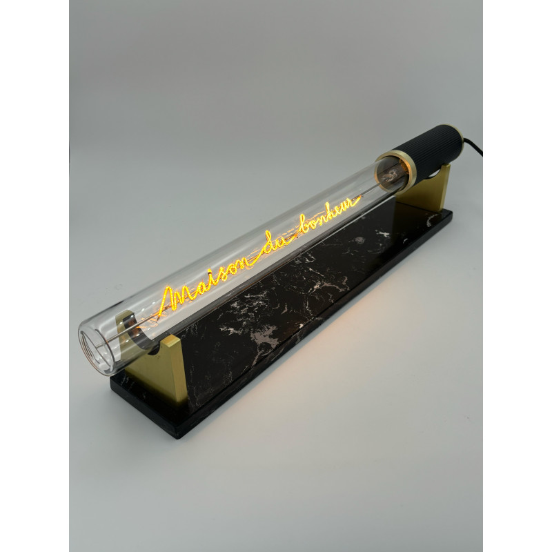 Exprimez vos sentiments avec l’ampoule Message In The Tube « Maison du bonheur ». Cette ampoule unique, conçue dans un design tubulaire, diffuse une lumière douce et chaleureuse, idéale pour créer une ambiance romantique et intime. Parfaitement dimmable, vous pouvez ajuster l’intensité lumineuse pour que votre message brille exactement comme vous le souhaitez.