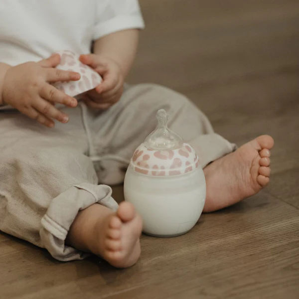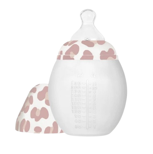 Biberon en silicone médical conçu pour minimiser l’exposition des bébés aux dangers des perturbateurs endocriniens.