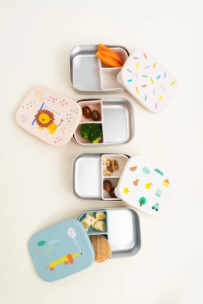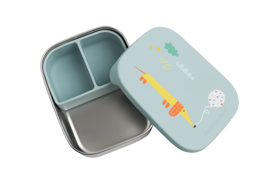 Boîte à lunch en acier inoxydable Flying Dog avec compartiments amovibles.