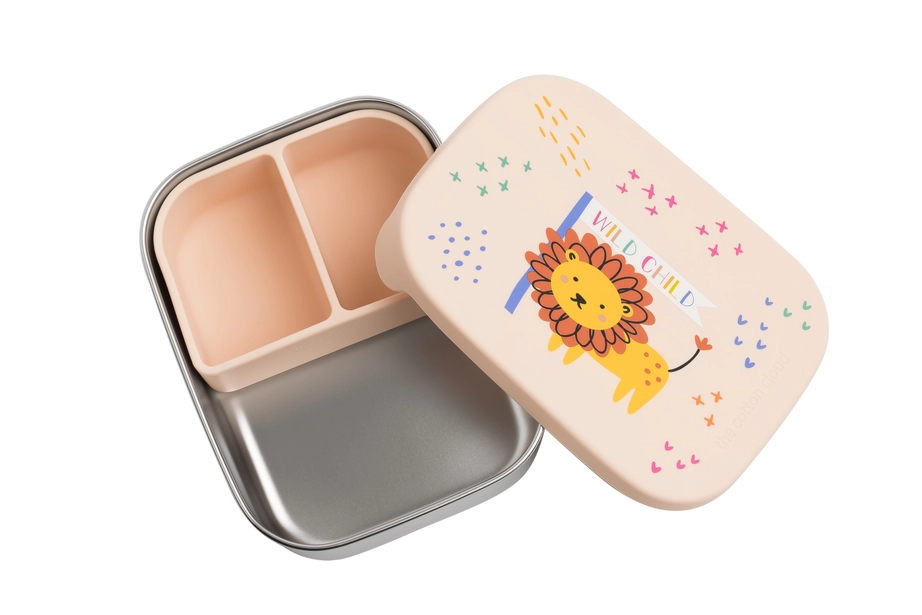 Boîte à lunch en acier inoxydable Wild Child avec compartiments amovibles.
