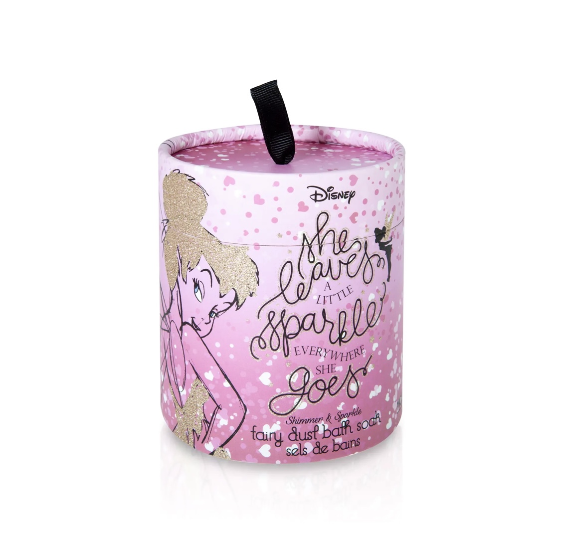 Une jolie boîte avec un personnage emblématique de Disney, la fée clochette, contenant du sels de bain, pour un moment détente.