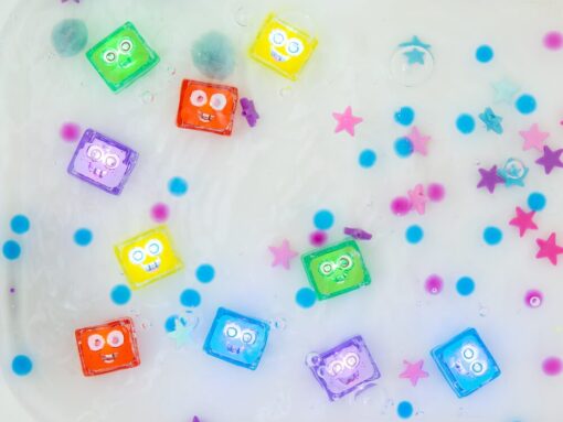 Chaque cube Glo Pal s’illumine automatiquement lorsqu’il entre en contact avec l’eau, ajoutant une touche de magie à chaque bain.