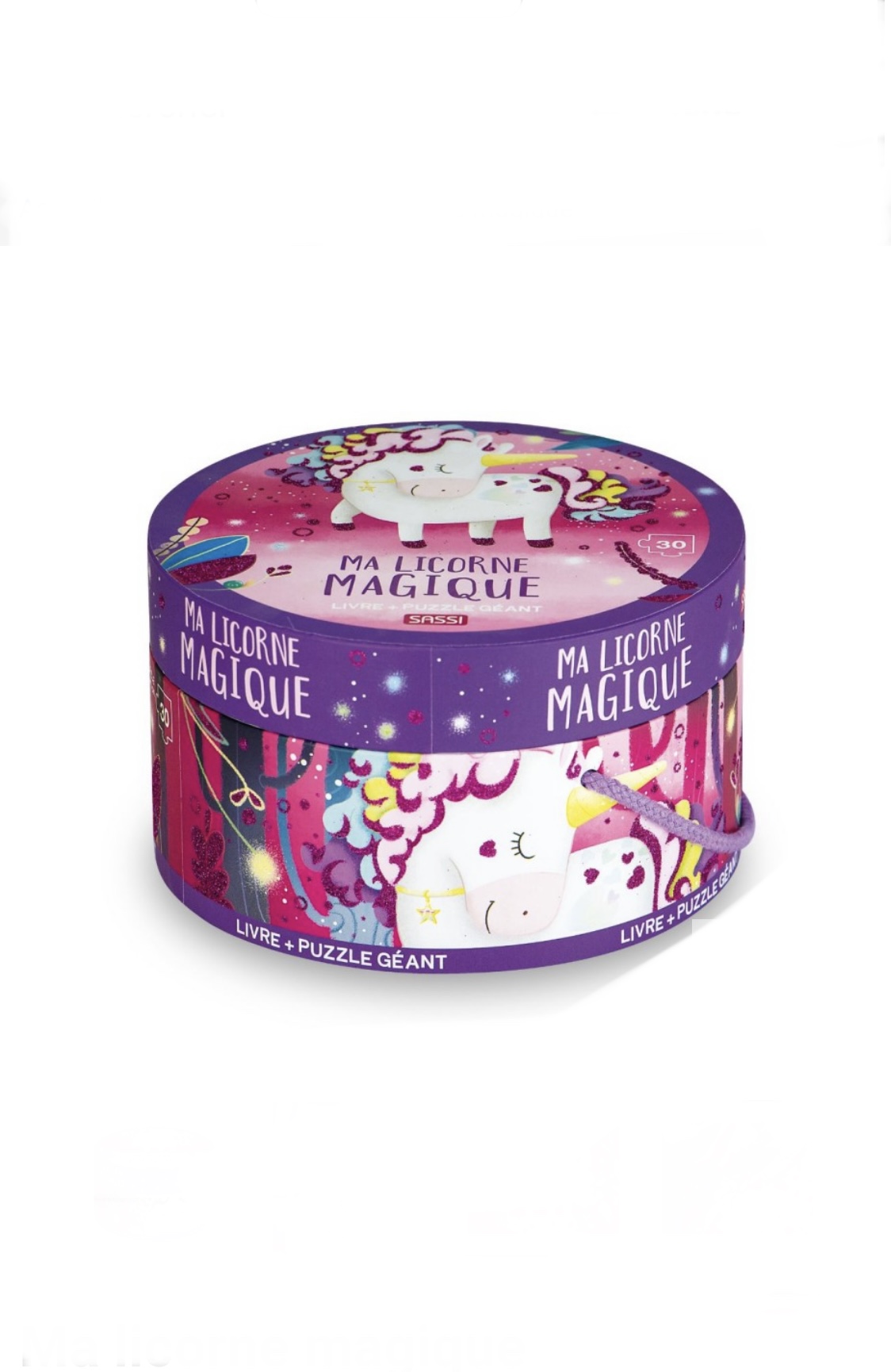 Dans ce beau coffret rond et coloré votre enfant découvrira un joli puzzle sur le thème des licornes. Sur ce grand puzzle, de 30 pièces et de 62 cm de long, il retrouvera dans un décor magique une licorne avec une corne dorée et une crinière arc-en-ciel.